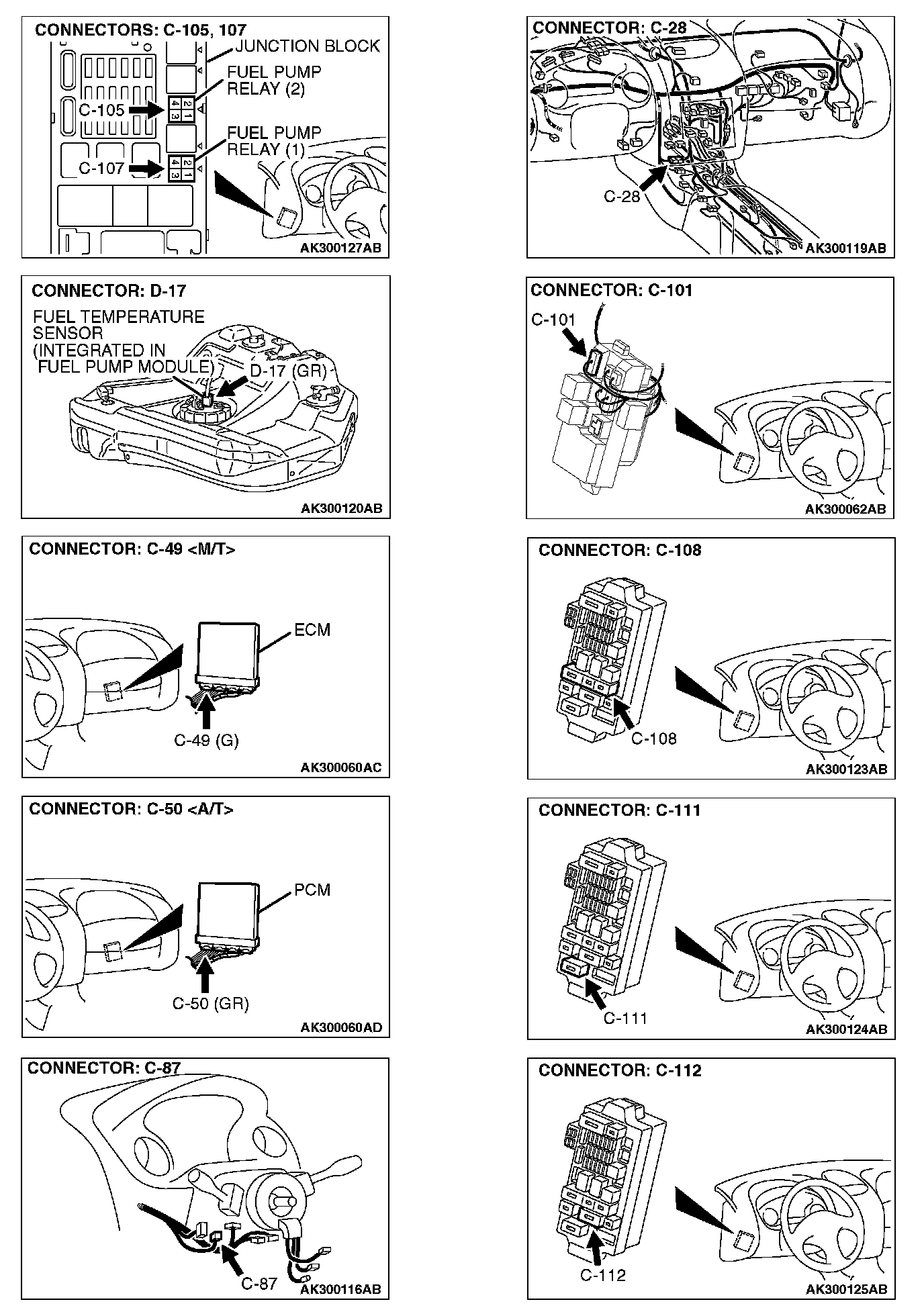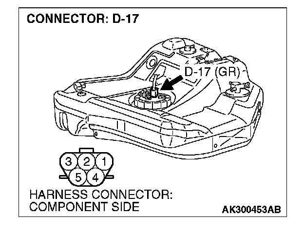 STEP 9. Check connector D-17 at fuel pump for damage.