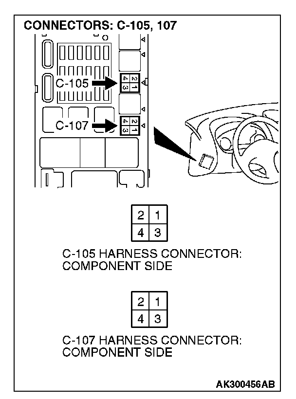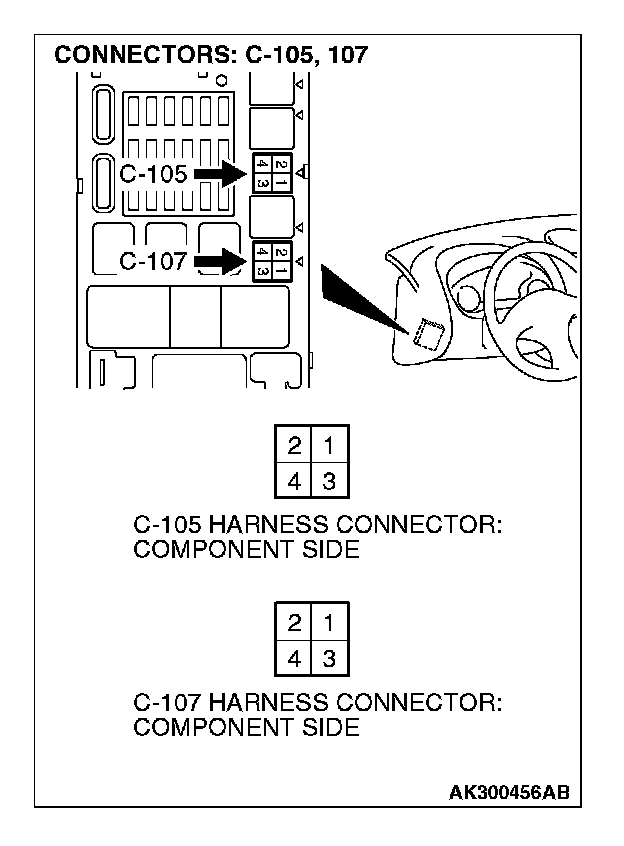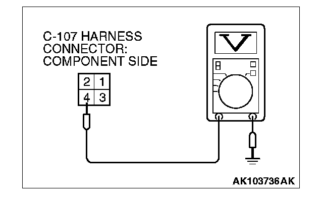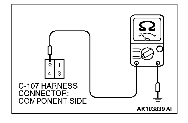 1. Disconnect the connector C-107 and measure at the harness side.