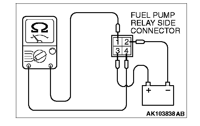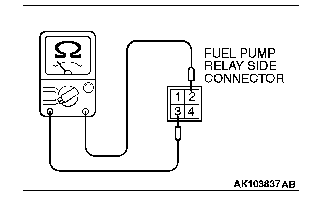 2. Check for continuity between the fuel pump relay terminals No. 2 and No. 3.