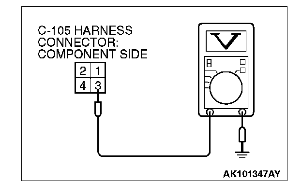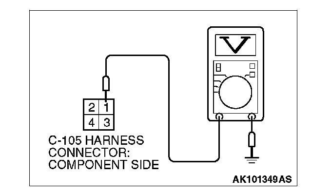 STEP 7. Measure the power supply voltage at fuel pump relay 2 harness side connector C-105.