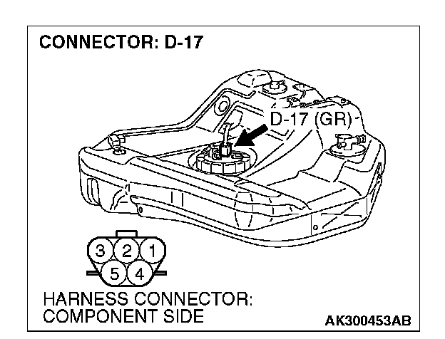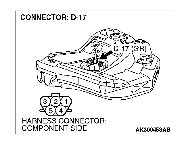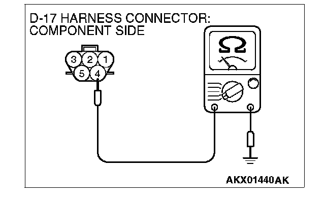 1. Disconnect the connector D-17 and measure at the harness side.