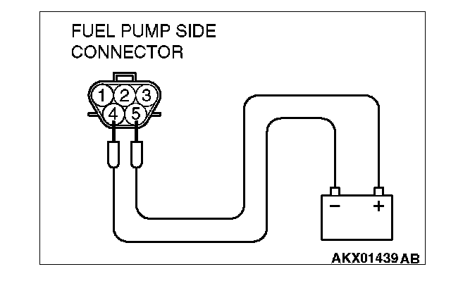 2. Use jumper wires to connect fuel pump connector terminal No. 5 to the positive battery terminal and terminal No. 4 to the negative battery terminal.