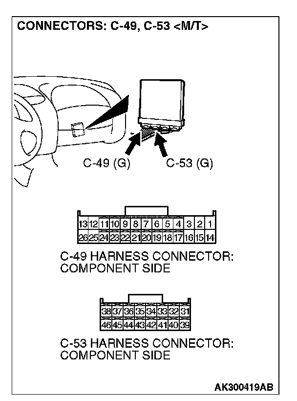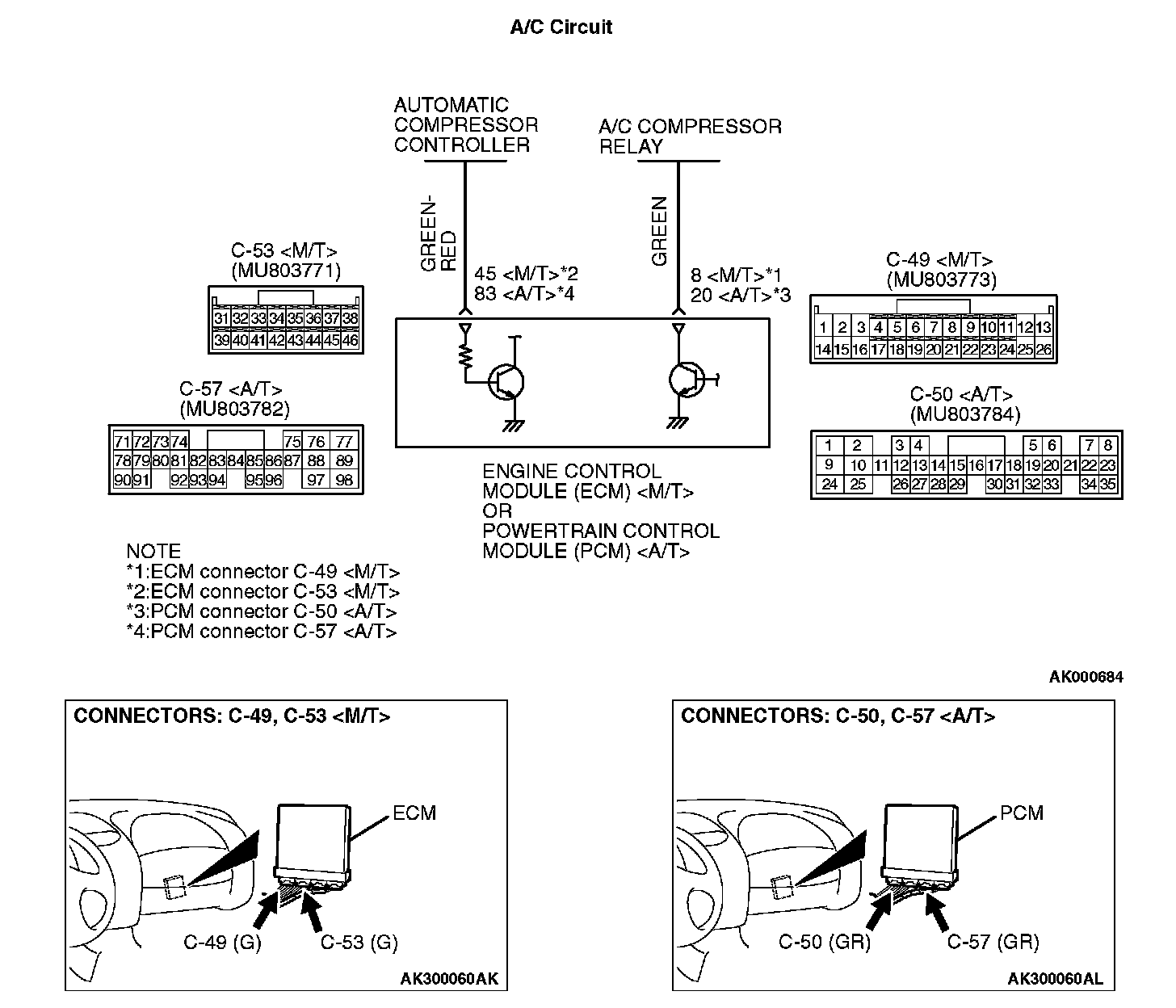 - When the A/C is "ON", the battery positive voltage is applied on the ECM (terminals No. 45)