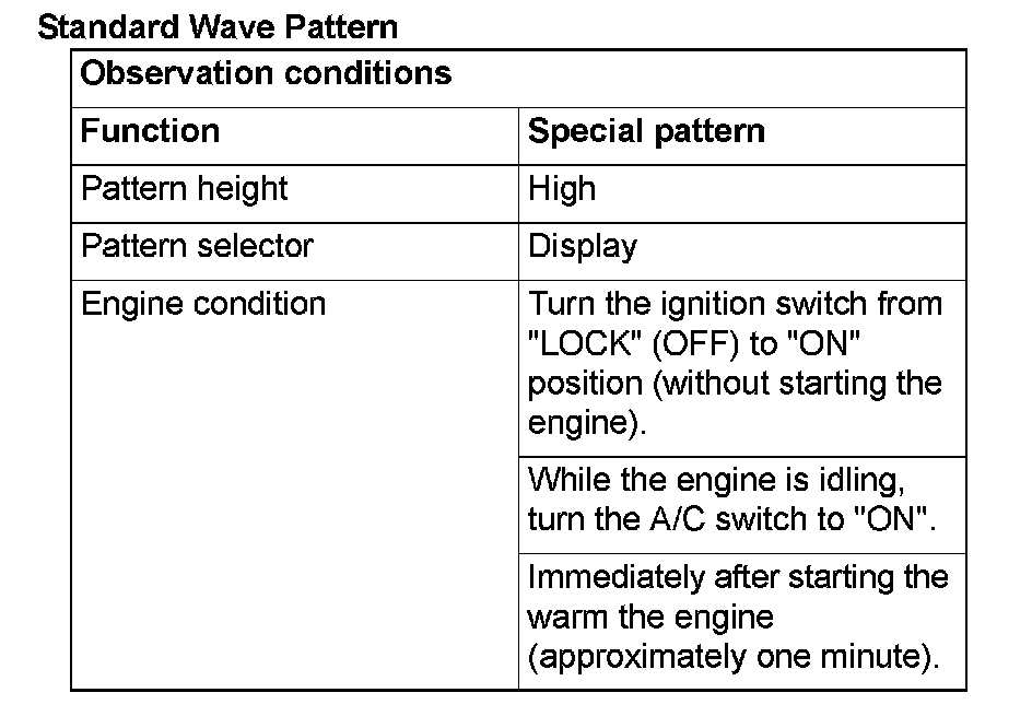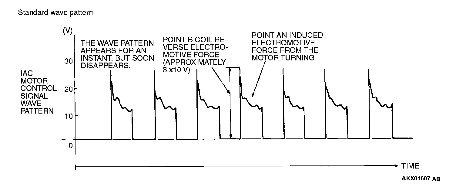 Check that the standard wave pattern appears when the idle air control motor is operating.