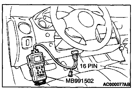 1. Connect scan tool MB991502 to the data link connector.