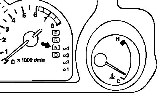 CAUTION: If the "N" range light is flashing twice per second, it means that the transmission fluid temperature is too high. Stop the vehicle in a safe place and wait until the "N" range light switches off.