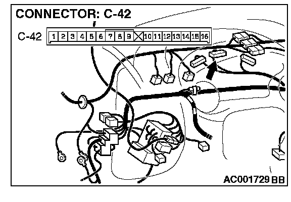 STEP 6. Check the harness for open circuit, short circuit to ground or damage between PCM connector C-57 <2.4L Engine> or C-59 <3.0L Engine> terminal 80 and combination meter connector C-42 terminal 30.