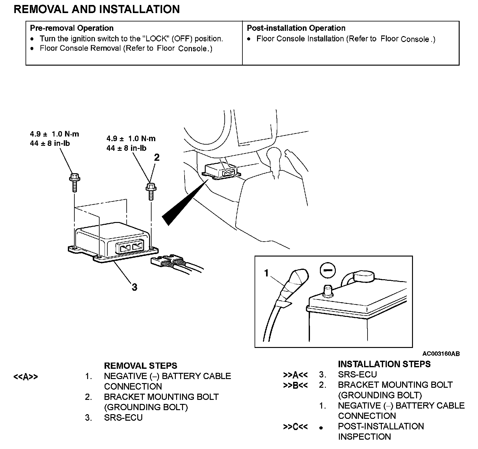 - Do not drop or subject the SRS-ECU to impact or vibration. If denting, cracking, deformation, or rust are discovered in the SRS-ECU, replace it with a new SRS-ECU. Discard the old one.