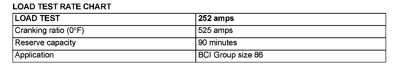 2. Load the battery at the recommended discharge rate (See LOAD TEST RATE CHART) for 15 seconds.