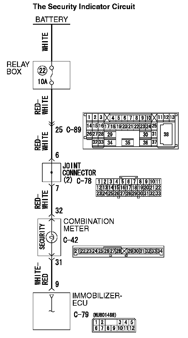 STEP 1. Check the "SECURITY" indicator light circuit of immobilizer-ECU connector C-79.