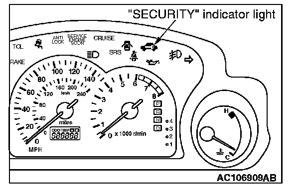 NOTE: The "SECURITY" indicator light is shared by the "SECURITY" system. If a problem can not be resolved, observe the "SECURITY" system troubleshooting (Refer to Theft Alarm System Diagnosis).