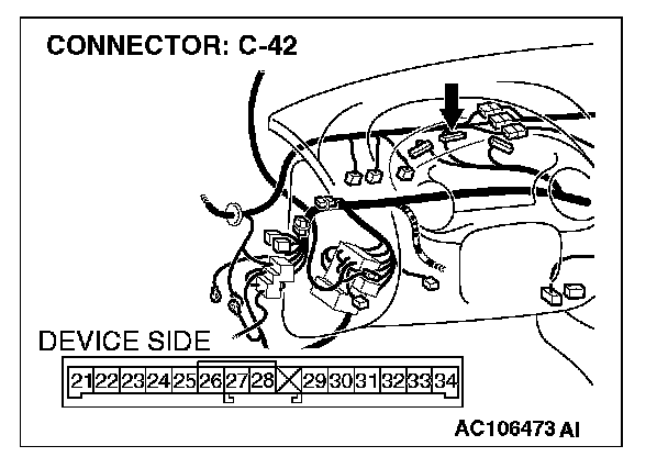 STEP 4. Check the wiring harness between immobilizer-ECU connector C-79 (terminal 9) and combination meter connector C-42 (terminal 31).