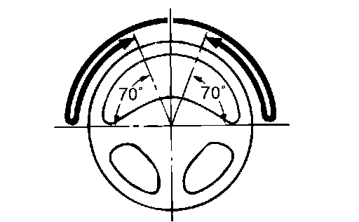 2. At a vehicle speed of approximately 35 km/h (22 mph), turn the steering wheel 90 degrees, hold a few seconds, then release. If the steering wheel then returns 70 degrees or more, the return can be judged satisfactory.