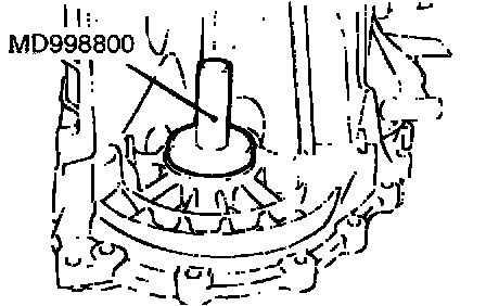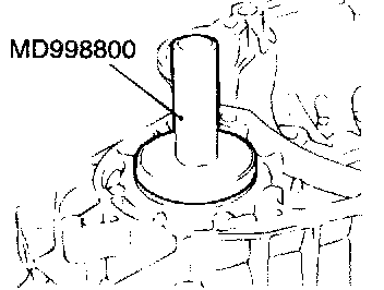 Use special tool MD998800 to tap the oil seal in the transaxle case.