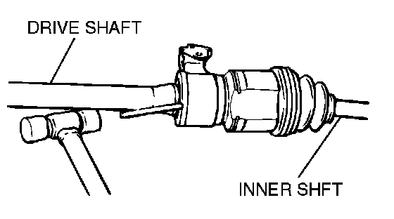 1. If the inner shaft and transaxle are tightly joined, tap the center bearing bracket lightly with a plastic hammer to remove the driveshaft and inner shaft from the transaxle.