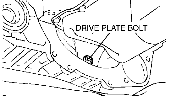 2. Remove the drive plate bolts while turning the crankshaft.