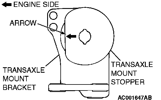 Install the transaxle mount stopper so that the arrow mark points as shown in the illustration.
