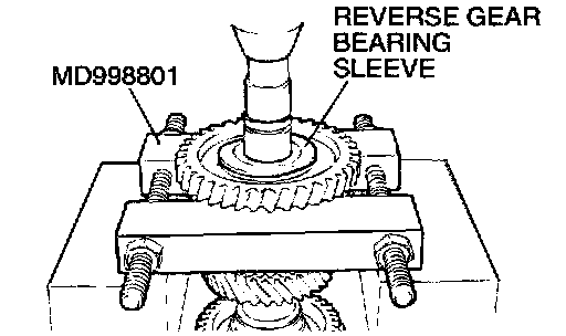 1. Using special tool MD998801, support the reverse gear, and then set them on the press.