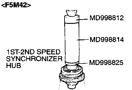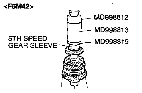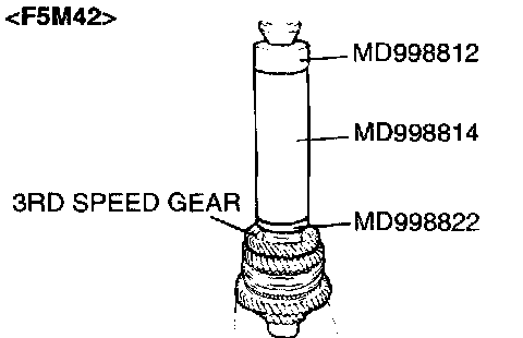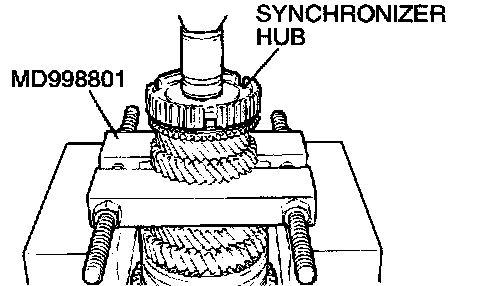 1. Using special tool MD998801, support the 4th speed gear, and then set them on the press.