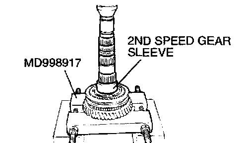 1. Using special tool MD998917, support the 2nd speed gear, and then set them on the press.