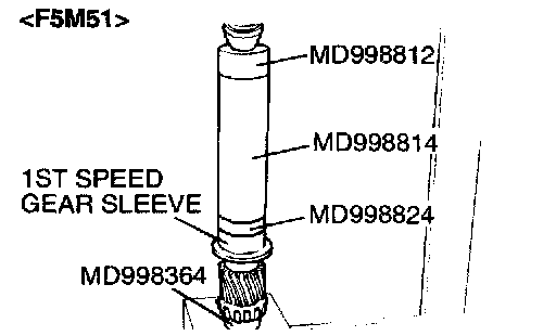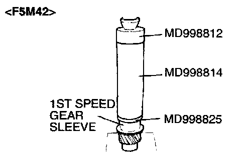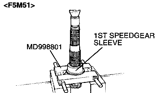 1. Using special tool MD998801, support the 1st speed gear sleeve, and then set them on the press.