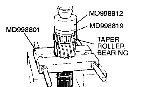 Using special tools MD998812, MD998819 and MD998364, press install the taper roller bearing.