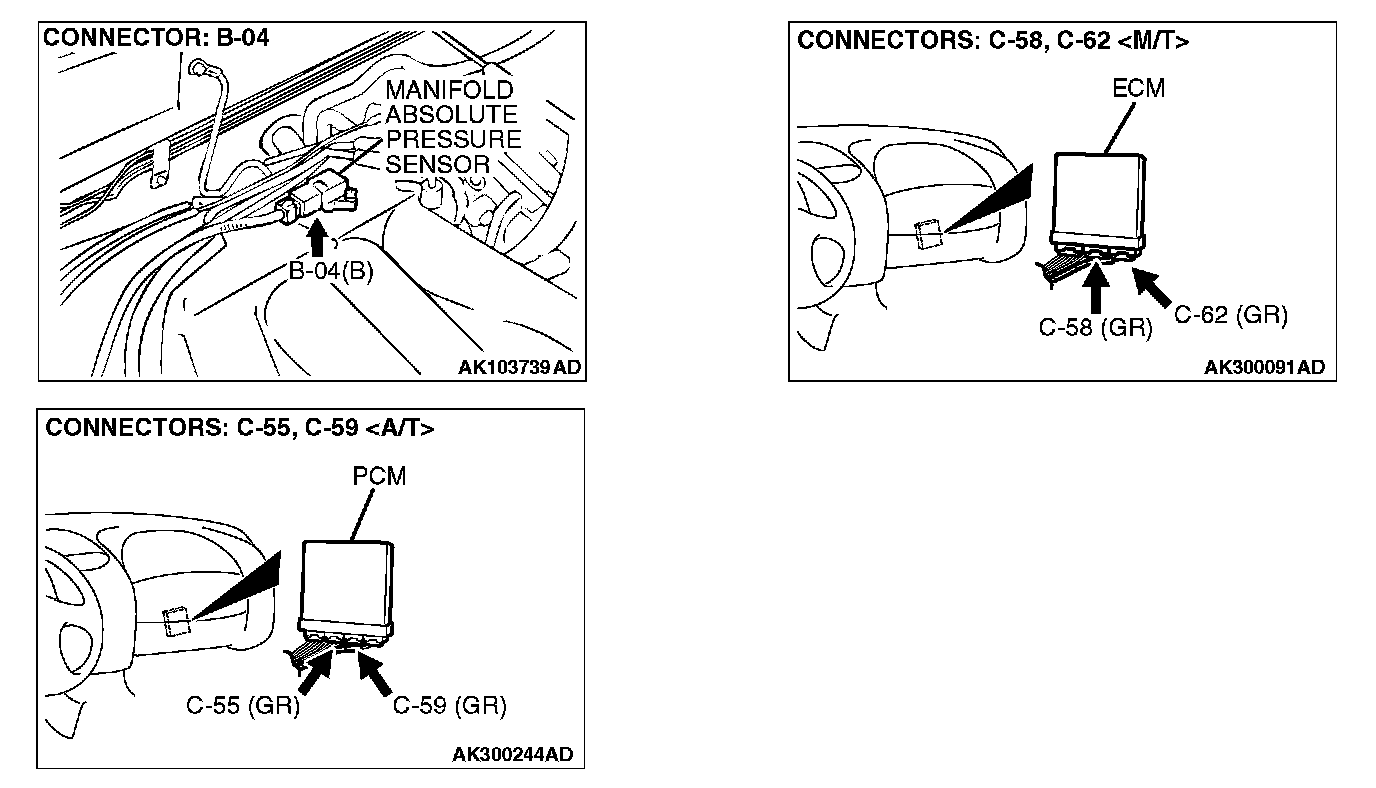 STEP 4. Check connector B-04 at the manifold absolute pressure sensor and connector C-62 at ECM