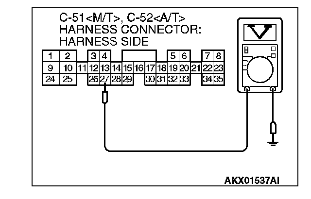 3. Measure the voltage between terminal No. 27 and ground by backprobing.