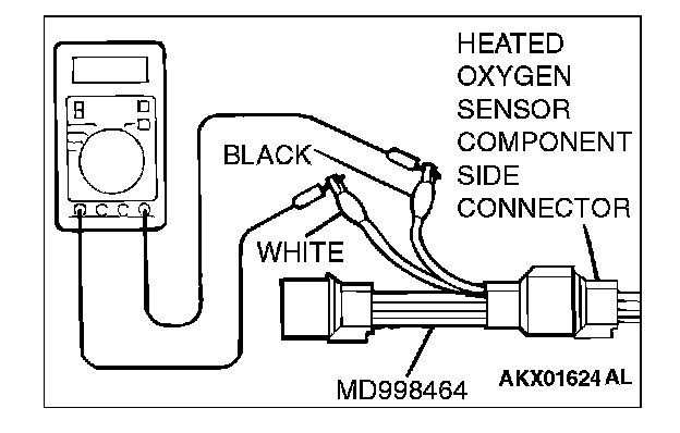 STEP 1. Using scan tool MB991958, check data list item 11: Heated Oxygen Sensor Bank 2, Sensor 1 (left front).