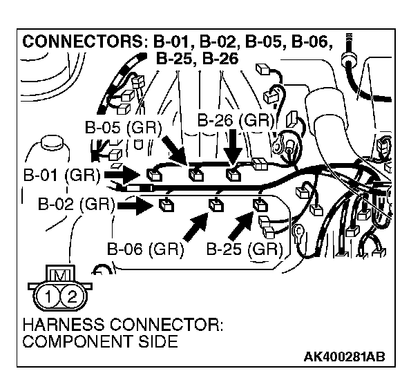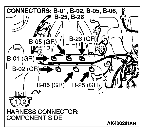 STEP 8. Check connector B-01, B-02, B-05, B-06, B-25, B-26 at injector and connector B-48 at injector intermediate connector for damage.