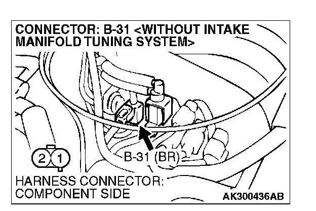 STEP 4. Measure the power supply voltage at EGR vacuum regulator solenoid valve harness side connector B-31.
