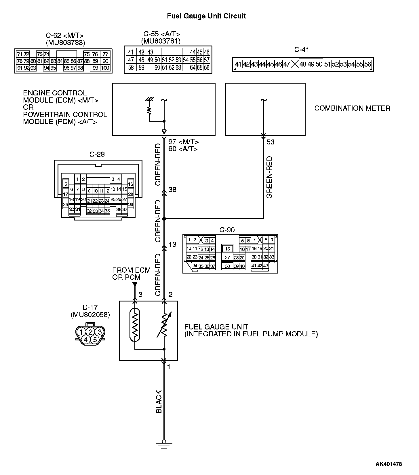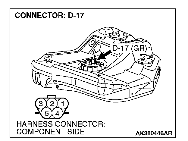 STEP 3. Check for short circuit to ground between fuel level sensor connector D-17 (terminal No. 2) and ECM connector C-62 (terminal No. 94)