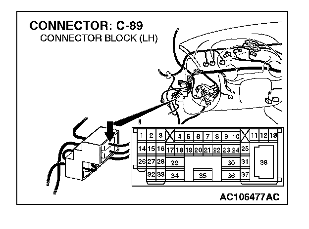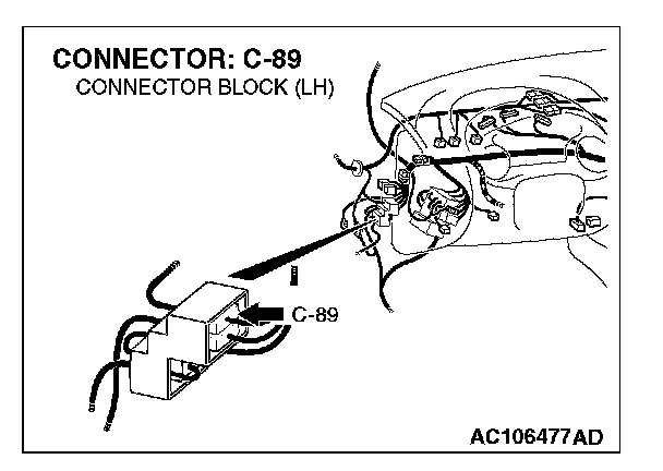 NOTE: After checking intermediate connector C-89, check the wires. If intermediate connector C-89 is damaged, repair or replace the wiring harness. Refer to Harness Connector Inspection.