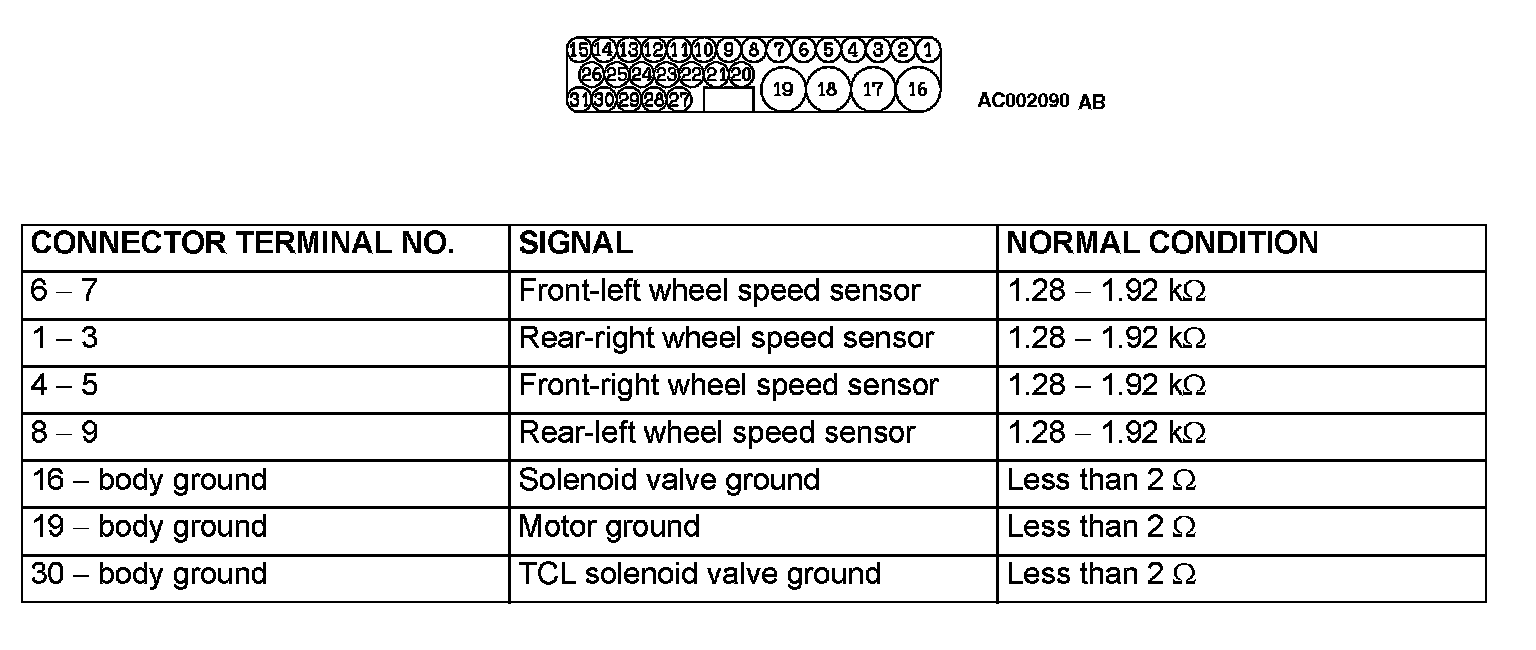 CHECK AT ABS-ECUTERMINAL VOLTAGE CHECK CHART