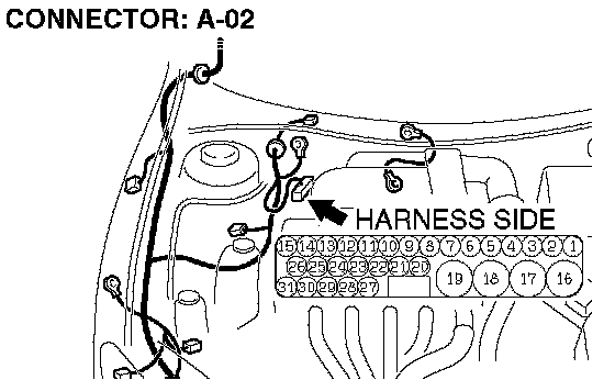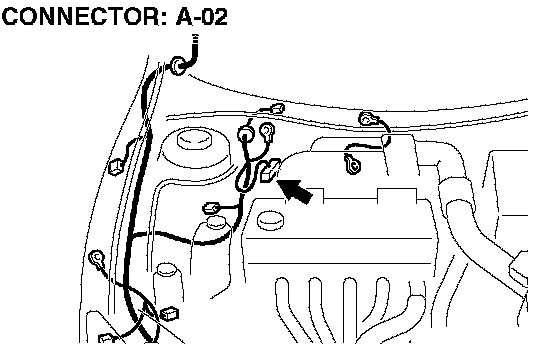 NOTE: This check must be done with the ABS-ECU connector A-02 is connected to the ABS-ECU. Disconnection of the ABS-ECU connector A-02 makes the connector lock switch OFF, so this continuity check could not be done.