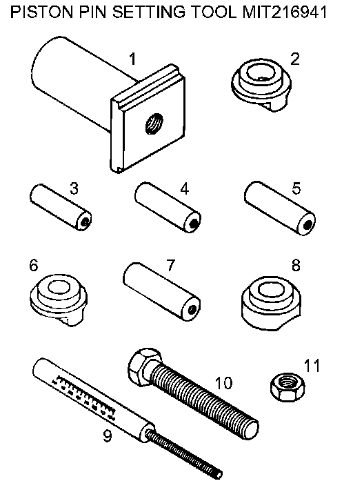 3. Insert the press pin through the piston pin hole. Select the correct connecting rod guide pin. (See above.) Thread the guide pin onto the threaded portion of the press pin.