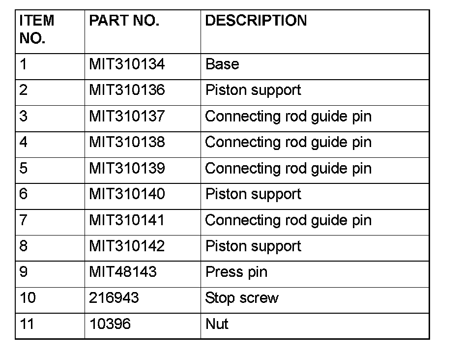 7. Remove the piston assembly from the base. Remove the guide pin and press pin from the assembly.
