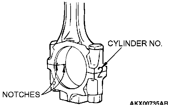 1. Mate the correct bearing cap with the correct connecting rod by checking with the alignment marks marked during disassembly. If a new connecting rod is used which has no alignment mark, position the notches for locking the bearing on the same side.