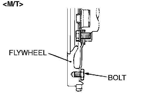 CAUTION: Do not remove the flywheel mounting bolt shown by the arrow. If this bolt is removed, the flywheel will become out of balance and damaged.