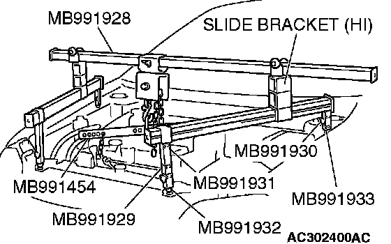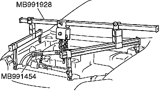 1. Assemble the engine hanger (special tool MB991928).Set following parts the base hanger.
