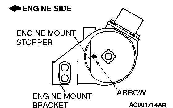 Clamp the engine mount stopper so that the arrow points in the direction as shown in the diagram.