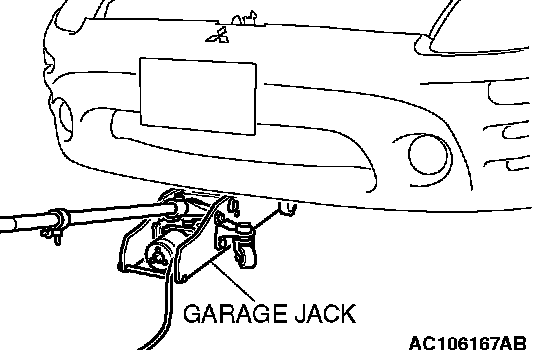 6. Place a garage jack against the engine oil pan with a piece of wood in between, jack up the engine so that the weight of the engine is no longer being applied to the engine mount bracket, and then remove the engine mount bracket.