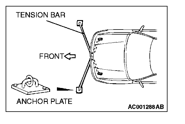 2. To prevent the front wheel from moving from side to side, attach tension bars to the tie-down hook, and secure both ends to anchor plates.