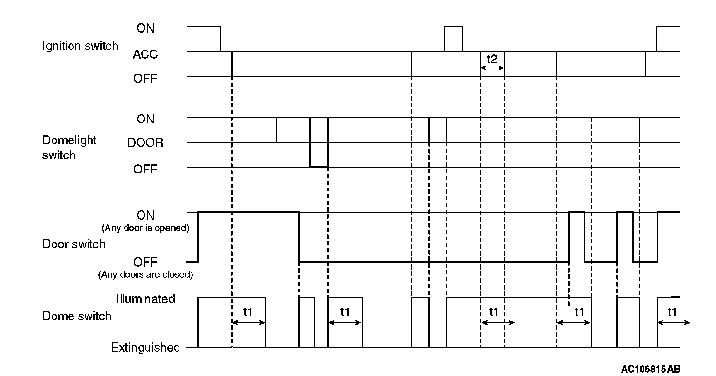 When the dome light switch is at the door position, the ETACS-ECU controls the lighting of the dome light as follows: