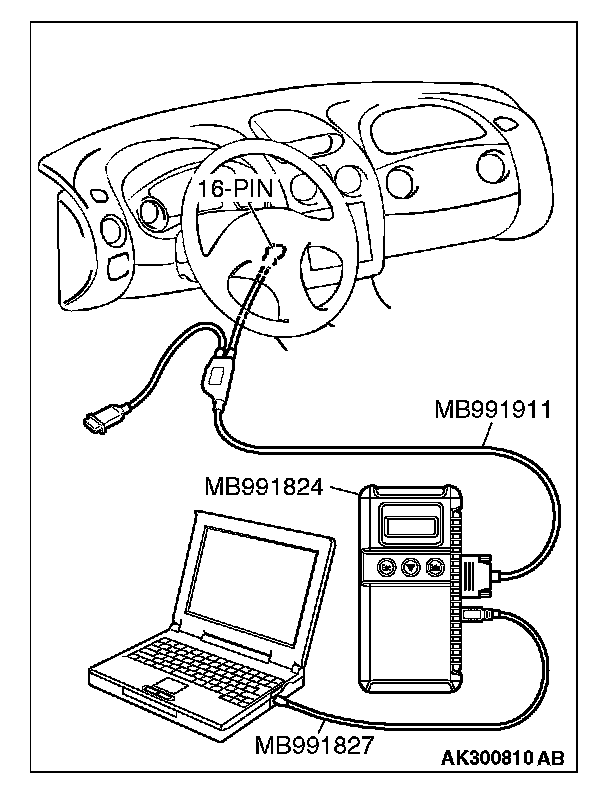 3. Connect special tool MB991827 to special tool MB991824 and the personal computer.