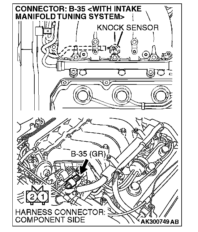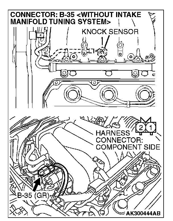 1. The ignition timing should retard more when knock sensor connector B-35 is disconnected than when it is connected.