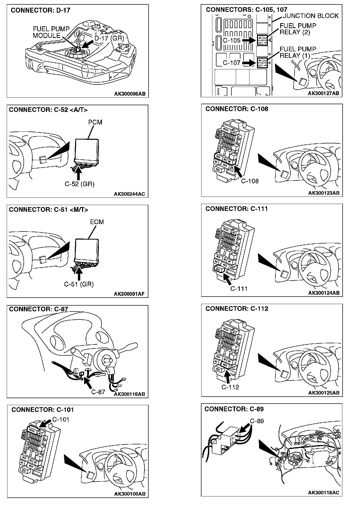 STEP 9. Check connector D-17 at fuel pump for damage.