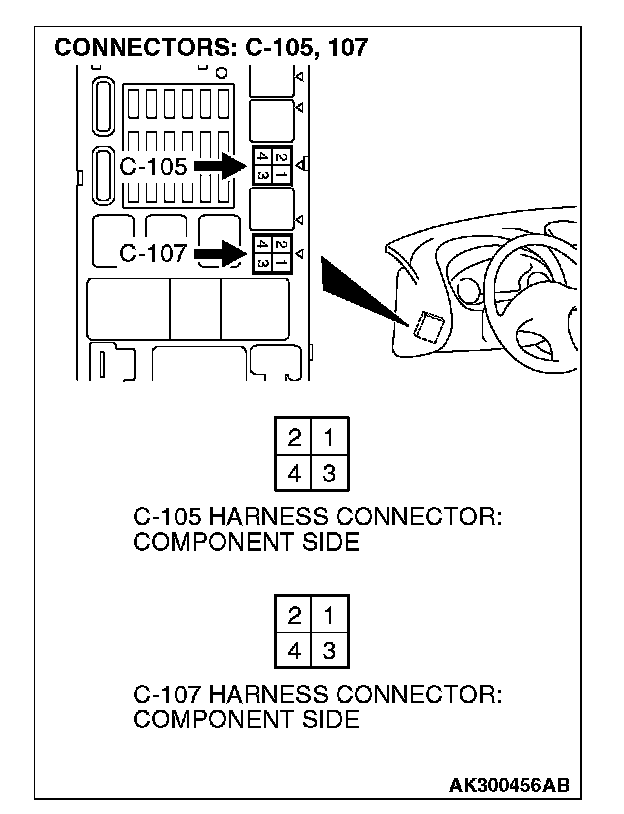 1. Disconnect the connector C-107 and measure at the harness side.
