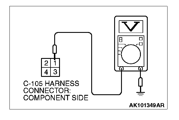 STEP 7. Measure the power supply voltage at fuel pump relay 2 harness side connector C-105.
