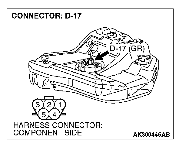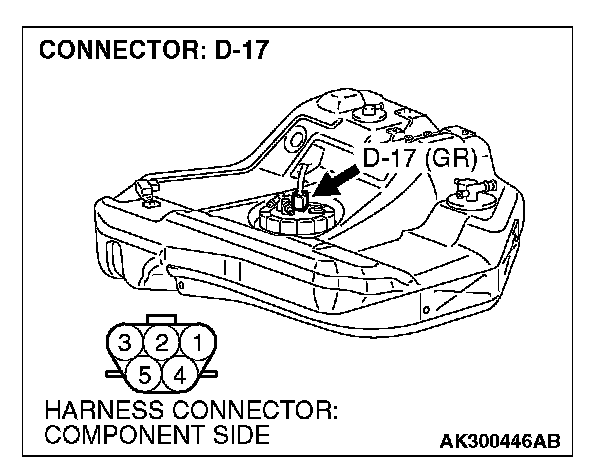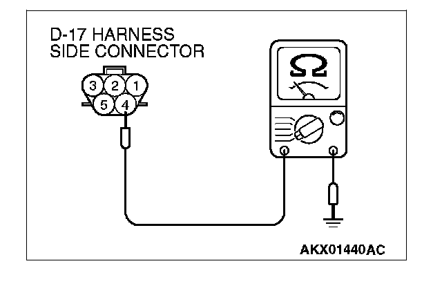 1. Disconnect the connector D-17 and measure at the harness side.